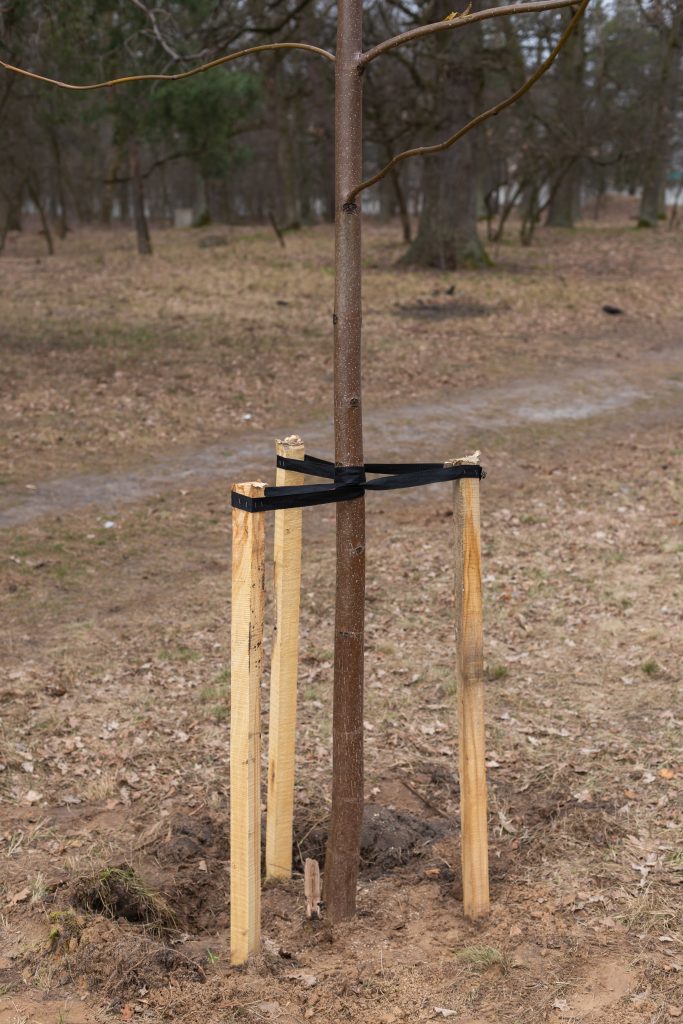 Proper staking is essential for helping a young tree establish its roots. Here is how to do it properly using tree stakes and ties.