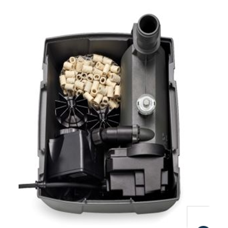 Integrated 750 litre per hour pump and 5 watt ultraviolet light.