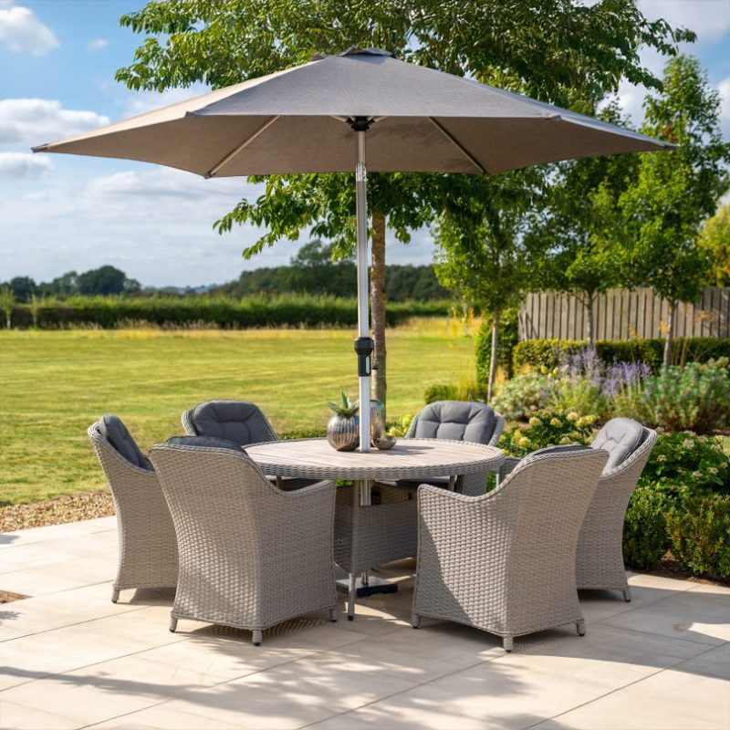 Enjoy relaxed alfresco dining with the Foxley 6-Seat Dining Set. Offering a smart balance of style, comfort, and value, this practical dining set provides an inviting space for everyday meals and casual outdoor entertaining. It includes six ergonomically designed dining chairs with supportive cushions, a large dining table, and a matching parasol with base—everything you need to dine comfortably outdoors.