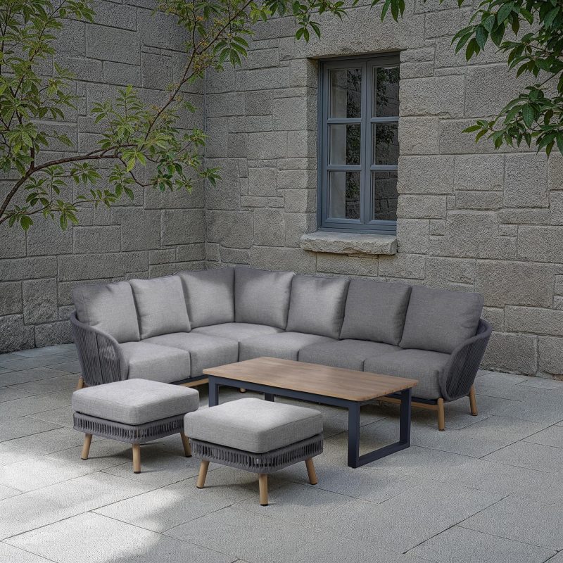 Includes: 1x corner sofa 1x coffee table 2x stools