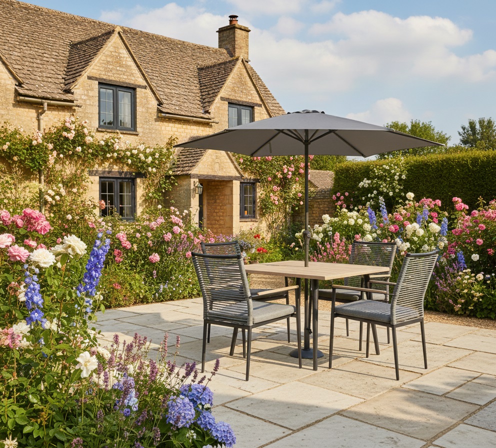 Designed for intimate outdoor meals and relaxed afternoons, the Merano 4 Seat Dining Set pairs timeless design with everyday practicality. Ideal for patios and smaller gardens, it creates a stylish and welcoming space for dining, entertaining, or unwinding outdoors.