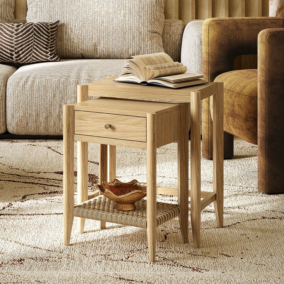 The Sicily Collection brings a refined blend of natural warmth and modern craftsmanship to living and dining spaces. Each piece is finished in a soft light oak lacquer that highlights the beauty of the wood grain, while woven accents – featured on shelves, door fronts, or seat surfaces – add inviting texture and artisan character. Thoughtful details such as brass hardware introduce a subtle touch of elegance, balancing the collection’s organic materials with a contemporary edge.