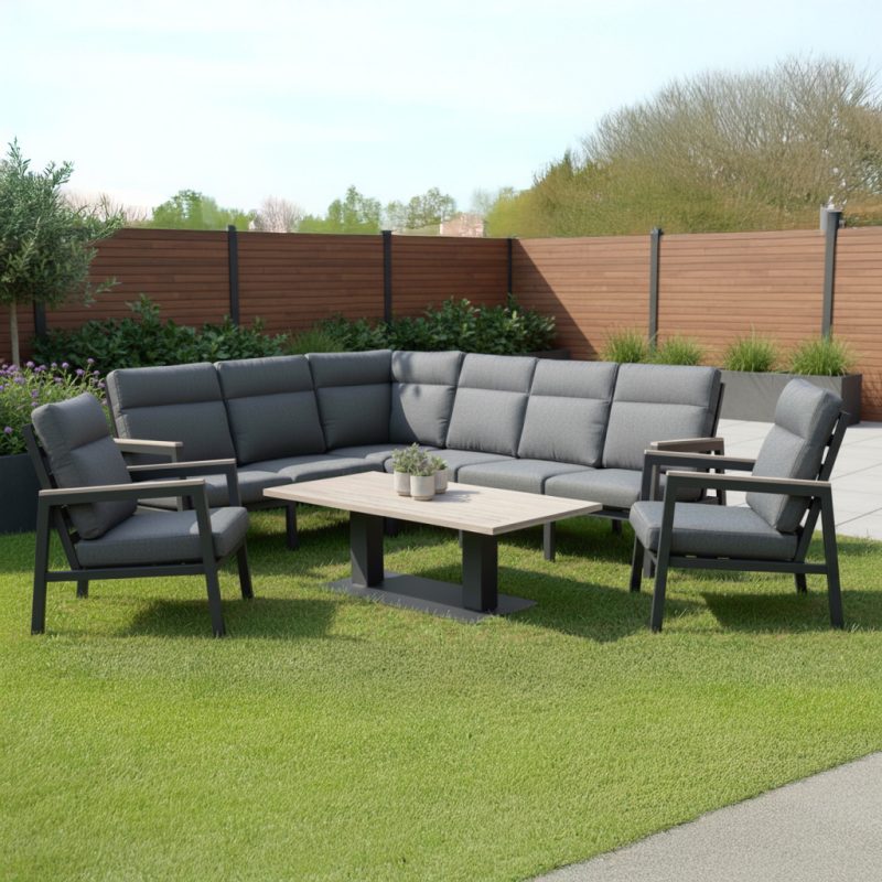 Designed with modern outdoor living in mind, the Tudor Mini Corner Set is a stylish and space-smart. Its clever corner layout makes the most of smaller gardens and patios while comfortably seating up to six people, creating a relaxed and sociable setting for everyday outdoor living.