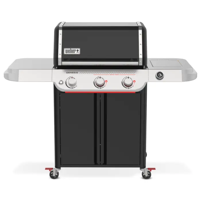 Take your entertaining to the next level and create unforgettable food with the reinvented 3-burner Genesis® E-325W Gas Barbecue with Sear Zone. Crank up the heat with two Boost Burners that unleash up to 35% more power in the extra-large Sear Zone for bold, flavourful sear marks on meat, fish, and vegetables. Get even heat across the cooking grates with the upgraded high-efficiency PureBlu burner system that ignites reliably and maintains a consistent gas flow. Enjoy an easy-to-read digital thermometer that lets you see the precise temperature day and night. Explore new ways to cook and entertain with the included Weber Crafted® Gourmet BBQ System cooking grates that hold a variety of grillware (sold separately), like the sear grate, pizza stone, griddle, and more. Add a Weber Crafted® Frame Kit (sold separately) to fit a variety of Weber Crafted® grillware (sold separately). Keep utensils, seasonings, and prepped food handy, ready to barbecue and easy to serve with customizable side tables that fit a variety of Weber Works drop-in accessories and snap-on accessories (sold separately).